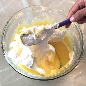 When you’re done folding it in, this is how your coconut cream pie filling should look: